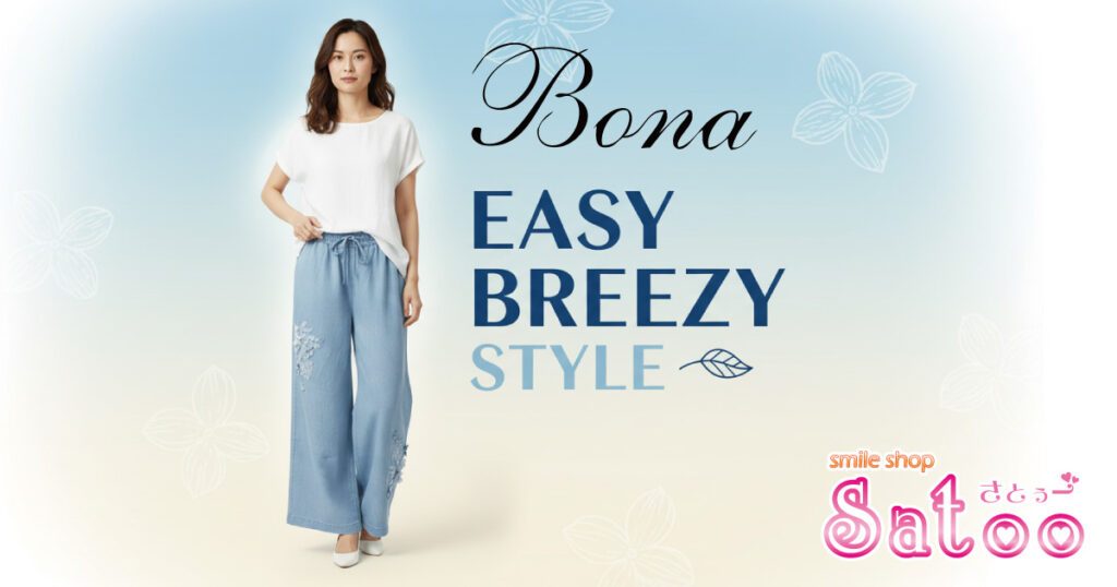 【Bona】ブルーデニムワイドパンツで大人の上品カジュアル