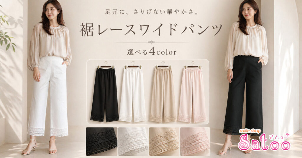 【Bona】甘すぎない華やかさ。上品なフードブラウス&ワイドパンツ