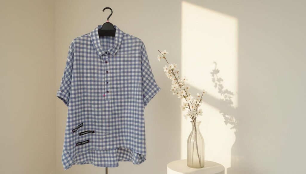 ギンガムチェックもストライプも、シンプルなボトムに合わせるだけでコーデがまとまりやすいです。