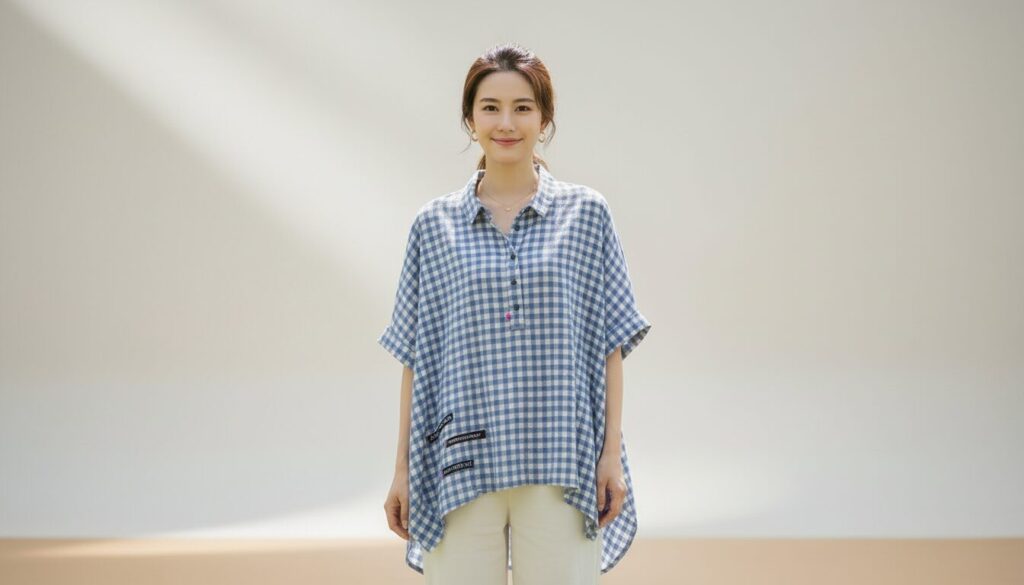 肌にべたつきにくく、見た目にも涼しげ。暑い季節に取り入れやすい素材感です。 - ゆったり着られて、体のラインを拾いにくい