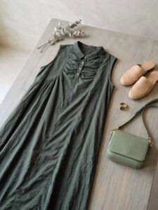 Satoo店長アコーレの洗練されたデザインが光るワンピース。リヨセル特有のしなやかな落ち感とほのかな光沢、そしてコットンのさらりとした肌触りが組み合わさり、これからの季節に最適な「涼やかで高級感のある」着心地を実現しています♡カーディガンやジャケットとも好相性です✨