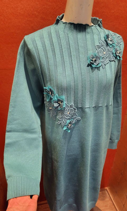 ニットチュニック ブラック・グリーン フリー 26,400円 アクリル55%・綿45%のお家で洗えるチュニックが届きました✨ -